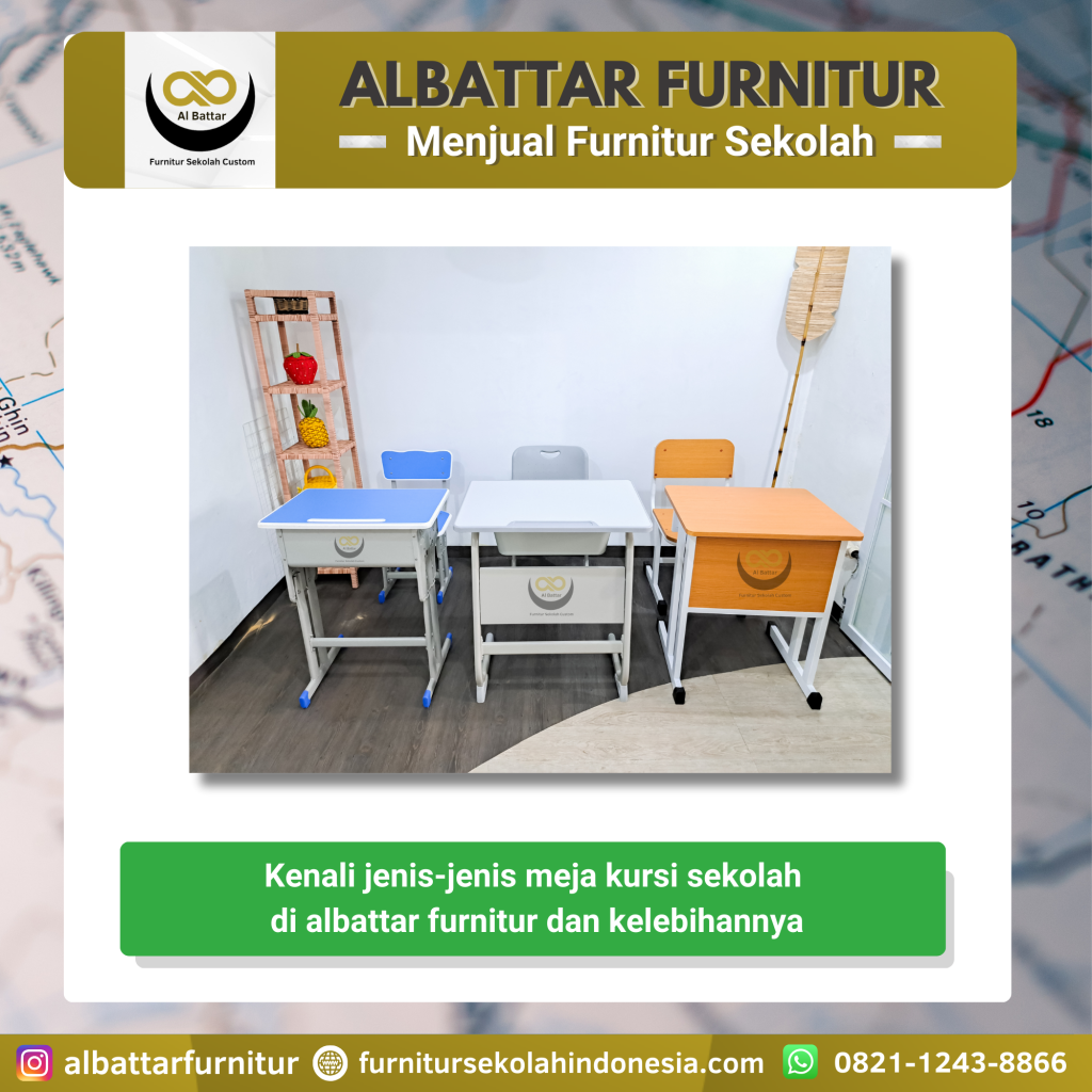Albattar Furnitur Sekolah Albattar Furniture merupakan sebuah brand ternama dan toko yang menjual dan memproduksi berbagai macam furnitur untuk sekolah,